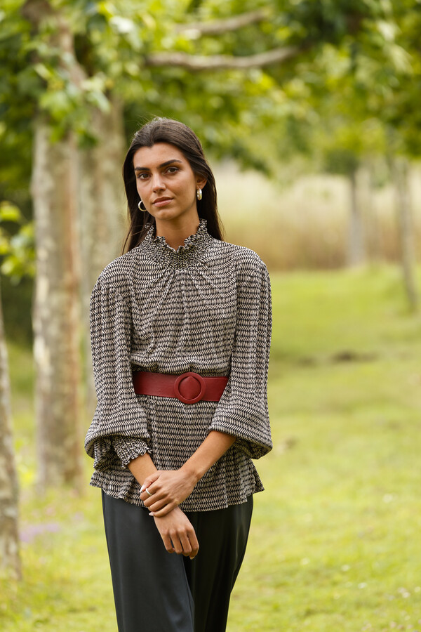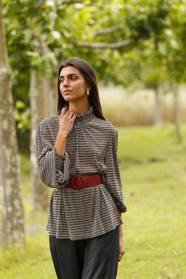 Blusa de efecto plisado con puños y cuello engomado. Cuenta con dos pequeñas aberturas en la parte inferior, aportando fluidez y movilidad a la prenda. La Blusa Rebel es una prenda romántica y sofisticada, diseñada para el día a día. ¡Siempre In!