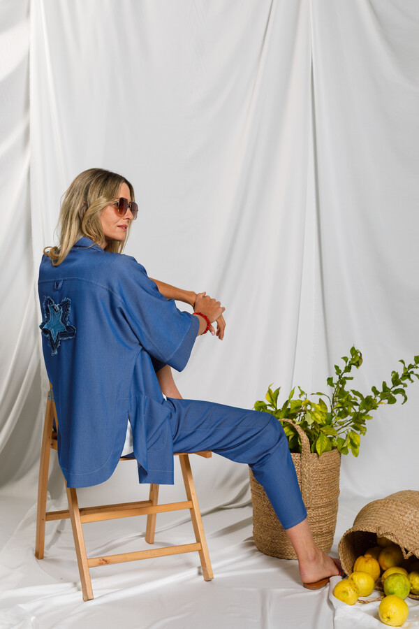 Casaca de silueta relajada con manga japonesa, que aporta amplitud y una caída fluida en la parte superior. Presenta aberturas laterales de terminación redondeada, que suavizan la línea y facilitan el movimiento.