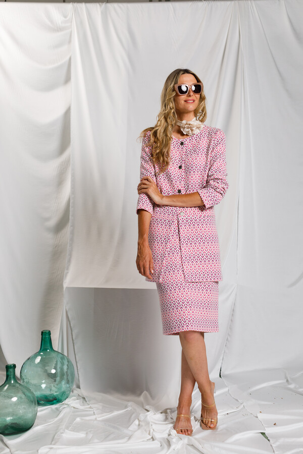 Abrigo estilo Chanel, elegante y atemporal. Presenta bolsillos discretos integrados en el corte de la prenda, que aportan un acabado limpio y sofisticado. Incluye aberturas laterales que brindan mayor comodidad y libertad de movimiento. El cierre es mediante botones frontales.