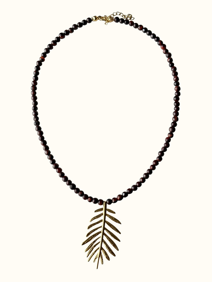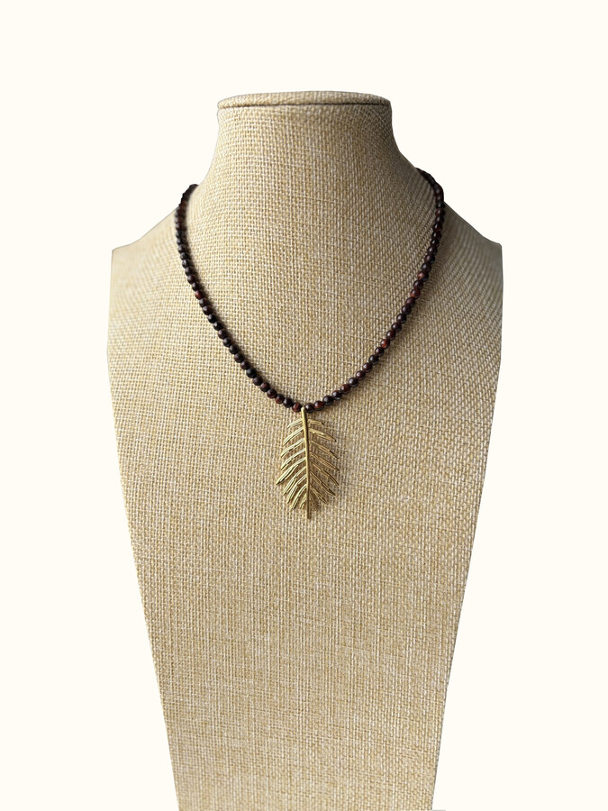 Gargantilla ojo de tigre y pluma inox