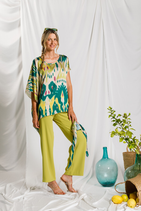 Pantalón de líneas limpias y diseño atemporal, confeccionado con pierna ancha que aporta comodidad y una silueta moderna y favorecedora. Su estructura fluida permite un movimiento natural y una caída elegante.