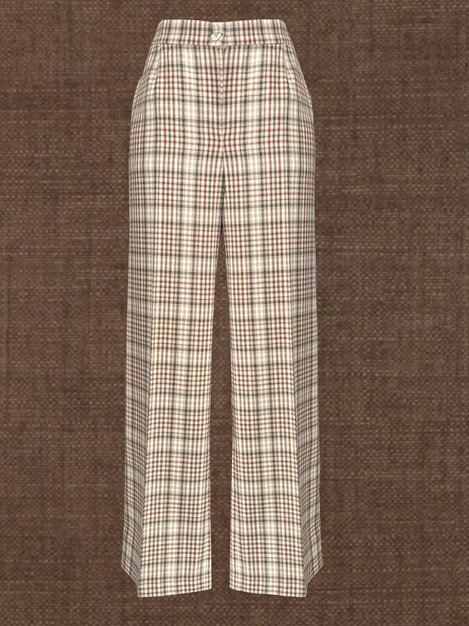 Redefine la elegancia casual con este pantalón de pierna ancha que combina comodidad y sofisticación. Su corte recto se adapta perfectamente a la silueta, mientras que a partir de la rodilla se abre ligeramente en un estilo evasé, aportando movimiento y un toque moderno.