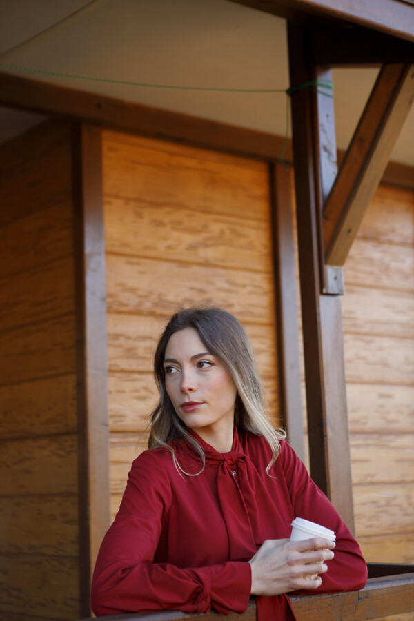 El lazo en el cuello, confeccionado en el mismo tono y tejido, aporta un aire romántico y versátil: puedes llevarlo anudado para un look más formal o suelto para un estilo relajado. Las mangas largas acampanadas, también rematadas con lazos delicados, añaden movimiento y un toque de diseño que eleva cualquier conjunto.