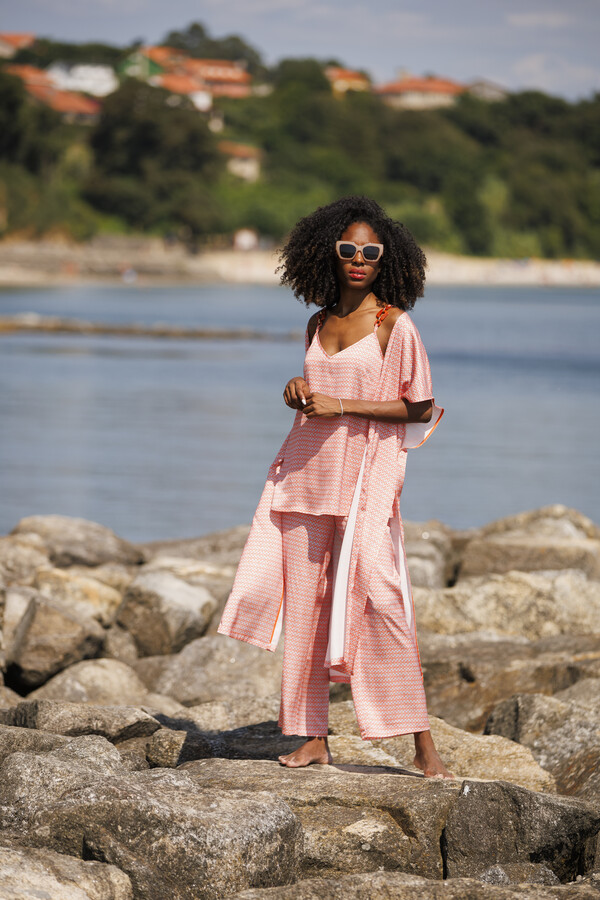Incluye aberturas largas que añaden movimiento y frescura a la prenda, favoreciendo la comodidad y un estilo moderno
