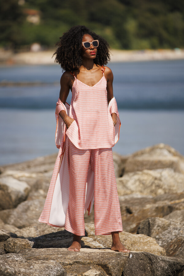 Top de diseño ligero y femenino, ideal para los días más cálidos. Presenta tirantes finos y un detalle de aplique en los hombros que aporta un toque distintivo y elegante.