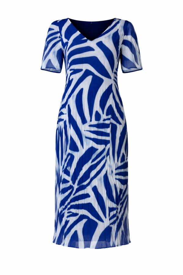 El diseño plisado aporta movimiento y elegancia, además de ser especialmente favorecedor: no marca y ayuda a disimular, creando una silueta más estilizada. El escote en pico alarga visualmente el cuello y afina la figura, mientras que la manga francesa añade un toque sofisticado y versátil.